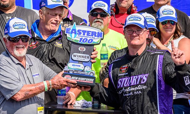 LOUDON, N.H. – The NASCAR Whelen Modified Tour Eastern Propane & Oil 100 was a reunion tour of sorts between Ron Silk and victory lane. The driver of the No. 85 Stuart’s Automotive Chevrolet took his first checkered flag since 2011 at New Hampshire Motor Speedway, marking his third trip to victory lane in Loudon.